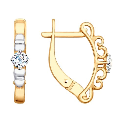 Серьги из золота с фианитом, гранатом