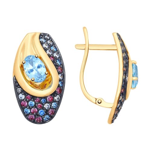 Серьги из золота с фианитом, топазом, топазом